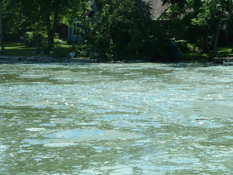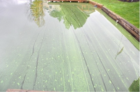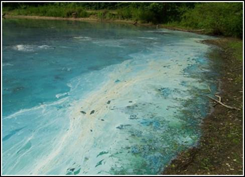 Surface scum with green, blue-green, and white colours. Photo Credit: EPA Ohio Gov