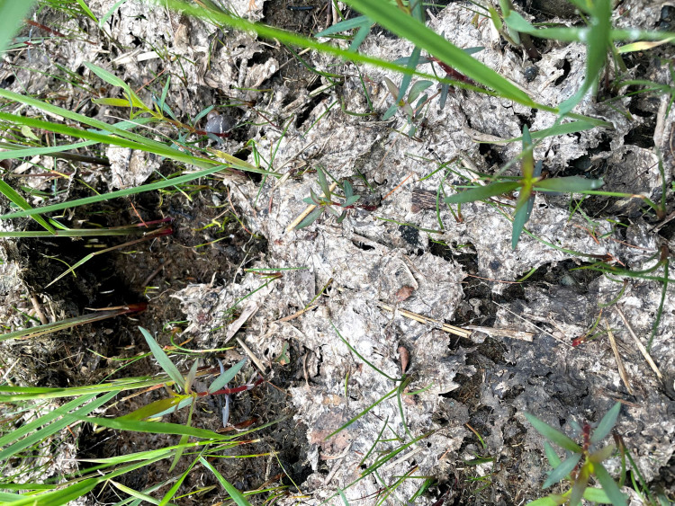 Algae blooms and algal mats are two different types of cyanobacteria. Most cyanobacteria blooms float on surface of water or migrate within the water column. Other types grow as a thick mat on the bottom of shallow lakes or rivers. Benthic mats can be dark green or brown. When mats are newly forming, they are often covered in tiny bubbles. When they are dying back, they can look stringy and white, and can wash up onto shorelines. Toxins created by these mat-forming blue-green algae can be fatal to humans and other mammals, including dogs. As these mats decay, they may smell like rotting garbage.