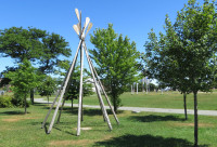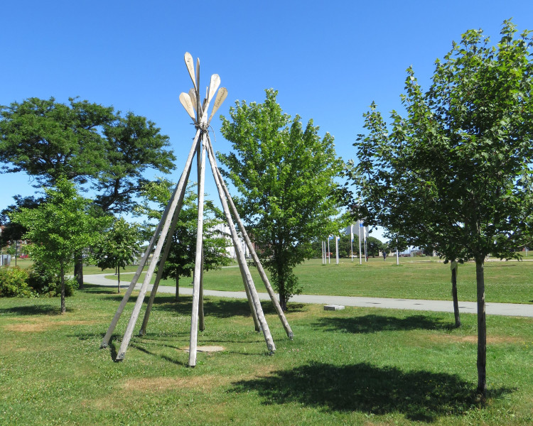 Maintenance work has also taken place on two others of the Our Common Woods series, elm elm maple elm by Theodore Heffler has been tended to by the artist removing a large chunk of rotted wood, and the paddles from the Mi’kmaw Sign Post by Alan Sylliboy were replaced in consultation with the artist. The Bench, by Steve Sekerak, which was never installed will soon find its home inside the Halifax Common Aquatic Facility community space.