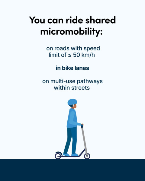 By-law M-300 (Micromobility By-law), allows you to ride an e-scooter in these places:- on roads where the speed limit is 50 km/h or less