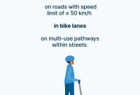 You cannot do the following:- go faster than 25 km/h on roads or in bike lanes
