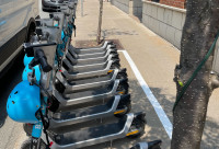 - if you see an improperly parked e-bike or e-scooter which is blocking the sidewalk, road, bike lane, etc.
